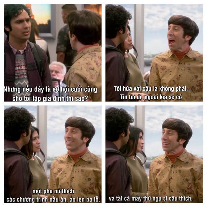 Trong cả bộ phim mình cũng rất ấn tượng với Raj, cậu bạn tiến sĩ vật lý thiên văn. Rất 'romantic hopeless', cậu luôn tin vào tình yêu, vào những lần gặp mặt và những cơ hội.