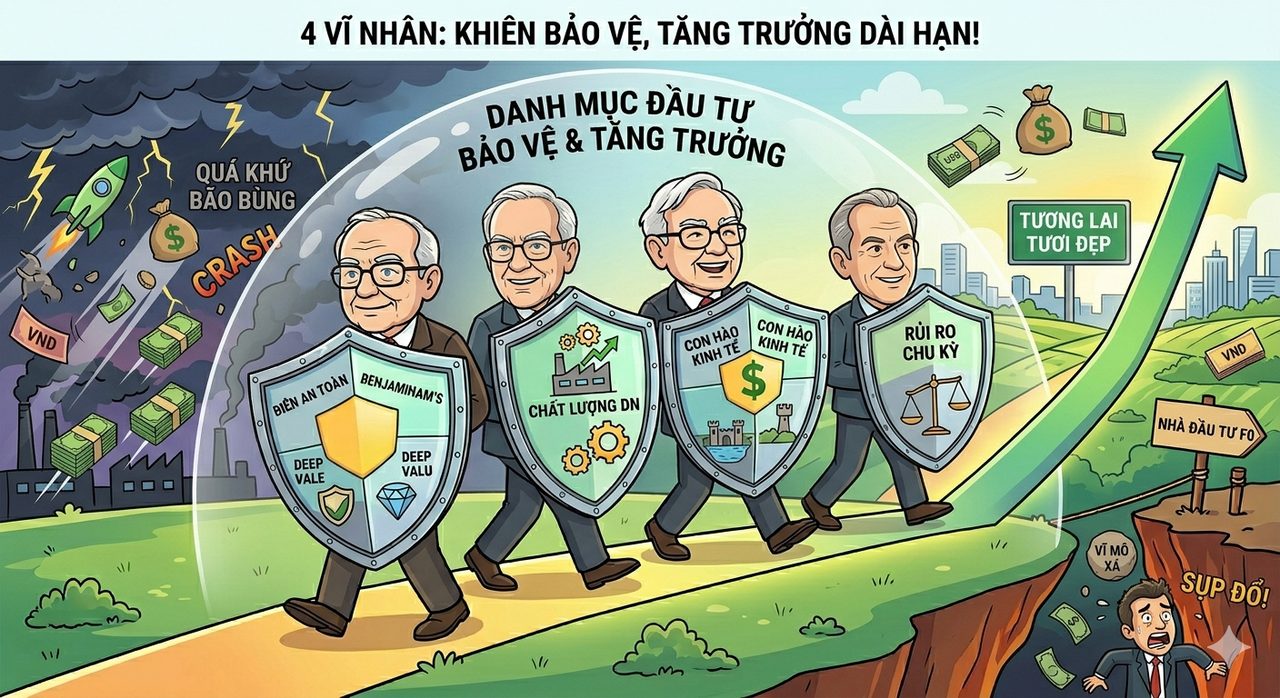 Với Buffet, ông tập vào Moat và định giá hợp lí, dòng tiền mạnh để bảo đảm sóng sót qua khó khăn, và chất lượng doanh nghiệp để tăng trưởng vượt trội