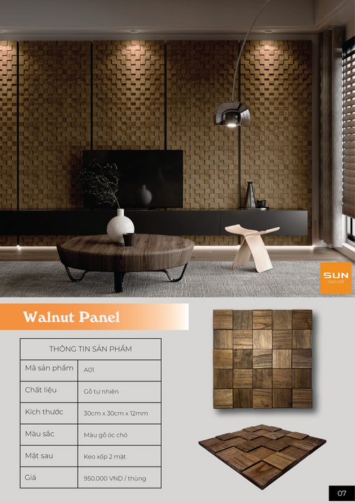 Walnut panel mã 01 là một mẫu gạch gỗ ốp tường cao cấp được sản xuất bởi thương hiệu SUN – Gạch Gỗ. Sản phẩm có màu sắc và vân gỗ tự nhiên, mang đến vẻ đẹp sang trọng và ấm cúng cho không gian sống.Về màu sắc của sản phẩm có màu nâu walnut đặc trưng, tạo nên vẻ đẹp cuốn hút rất phù hợp với nhiều phong cách thiết kế nội thất khác nhau và dễ hài hòa với các nội thất khác. Những sản phẩm gạch gỗ bên chúng tôi luôn có cái riêng và điểm nổi mà các sản phẩm khác không có.