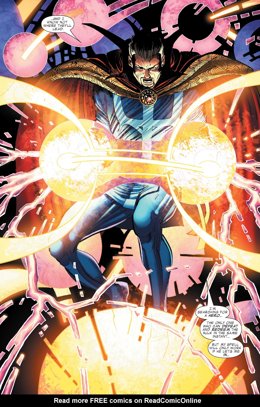 Ghost Rider quay đi và rời NewYork. Hulk ở lại và tiếp tục đợi cho đến hết hạn 24h. Trong lúc đó, ở trong điện thờ, Doctor Strange vẫn đang theo dõi mọi thứ. Stephen biết Ghost Rider không thể làm gì được vì Hulk vô tội, chính anh và những người kia với là kẻ xấu trong chuyện này. Anh liền thoát hồn và bay đi gặp Tony Stark, lúc này đang ở ngoài vũ trụ tìm cách đối phó với Hulk.
