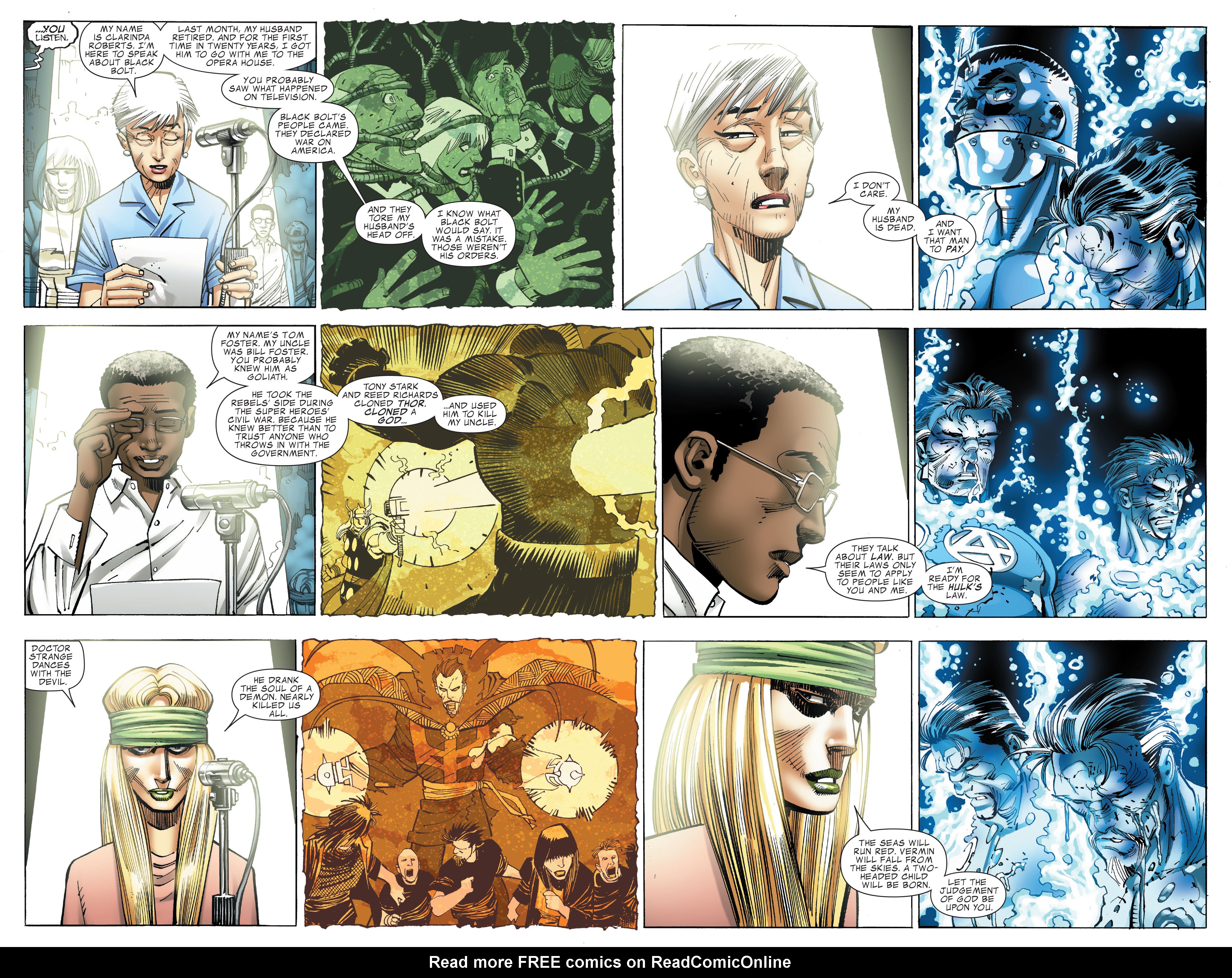 Những người dân làn lượt bước lên và nói ra những tội ác mà các "anh hùng" đã tạo ra. Trong mắt họ, các "anh hùng" chỉ là những kẻ liều lĩnh, những kẻ làm mà không chịu trách nhiệm cho hành động của mình. Đã bao nhiêu người bỏ mạng, đã bao nhiêu kẻ phải chết vì những "sự cứu rỗi" của họ. Hulk bước ra và dành vài lời cuối cùng cho những người bạn của mình: