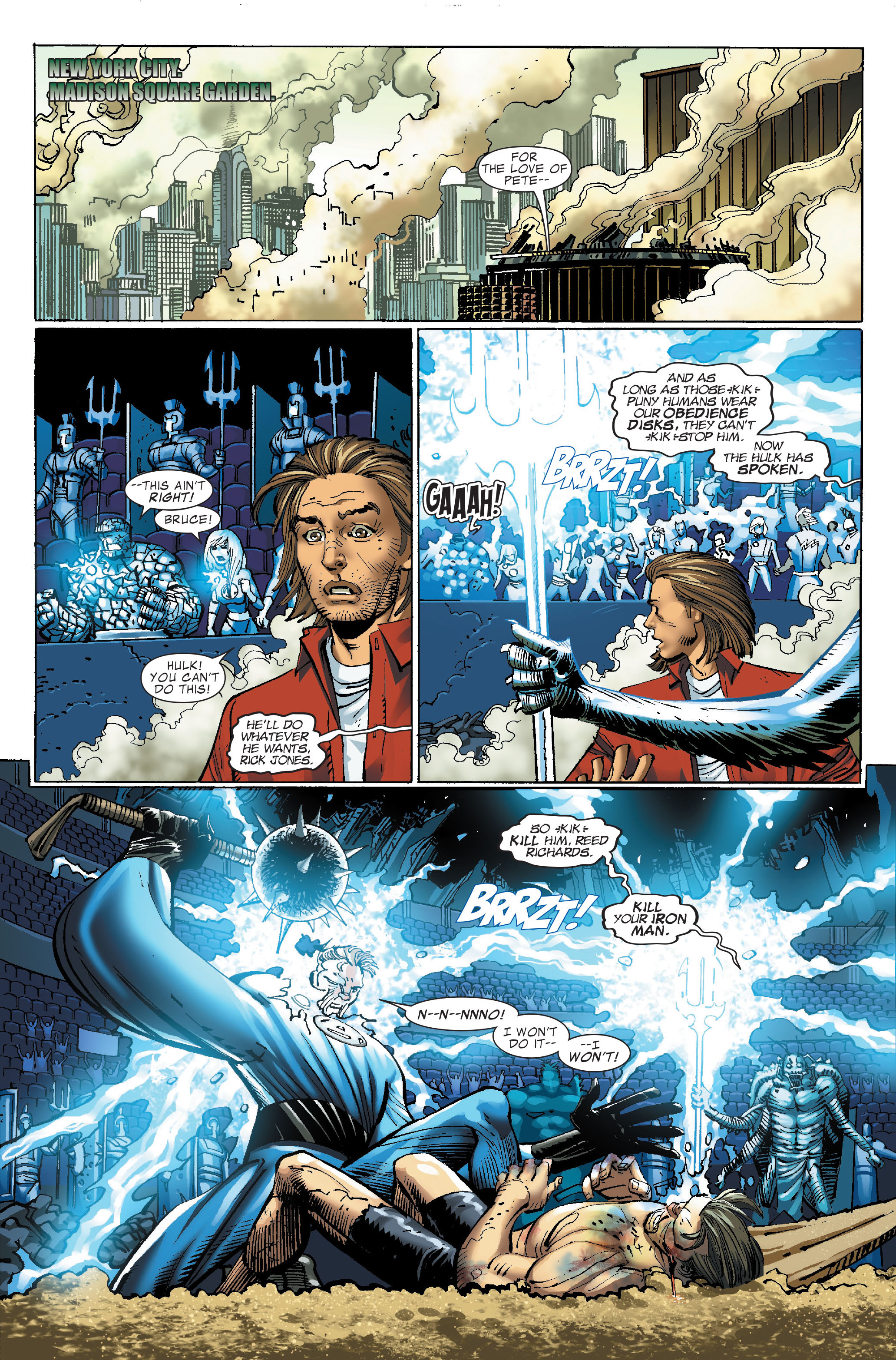 Chiếc chùy đập xuống đất. Reed vui mừng vì người bạn của mình còn sống, nhưng rồi anh nhận ra đó là hành động của Hulk. Bruce đã cho phép họ thoát khỏi sự tiêu khiển của chiếc đĩa. Kết thúc rồi sao?