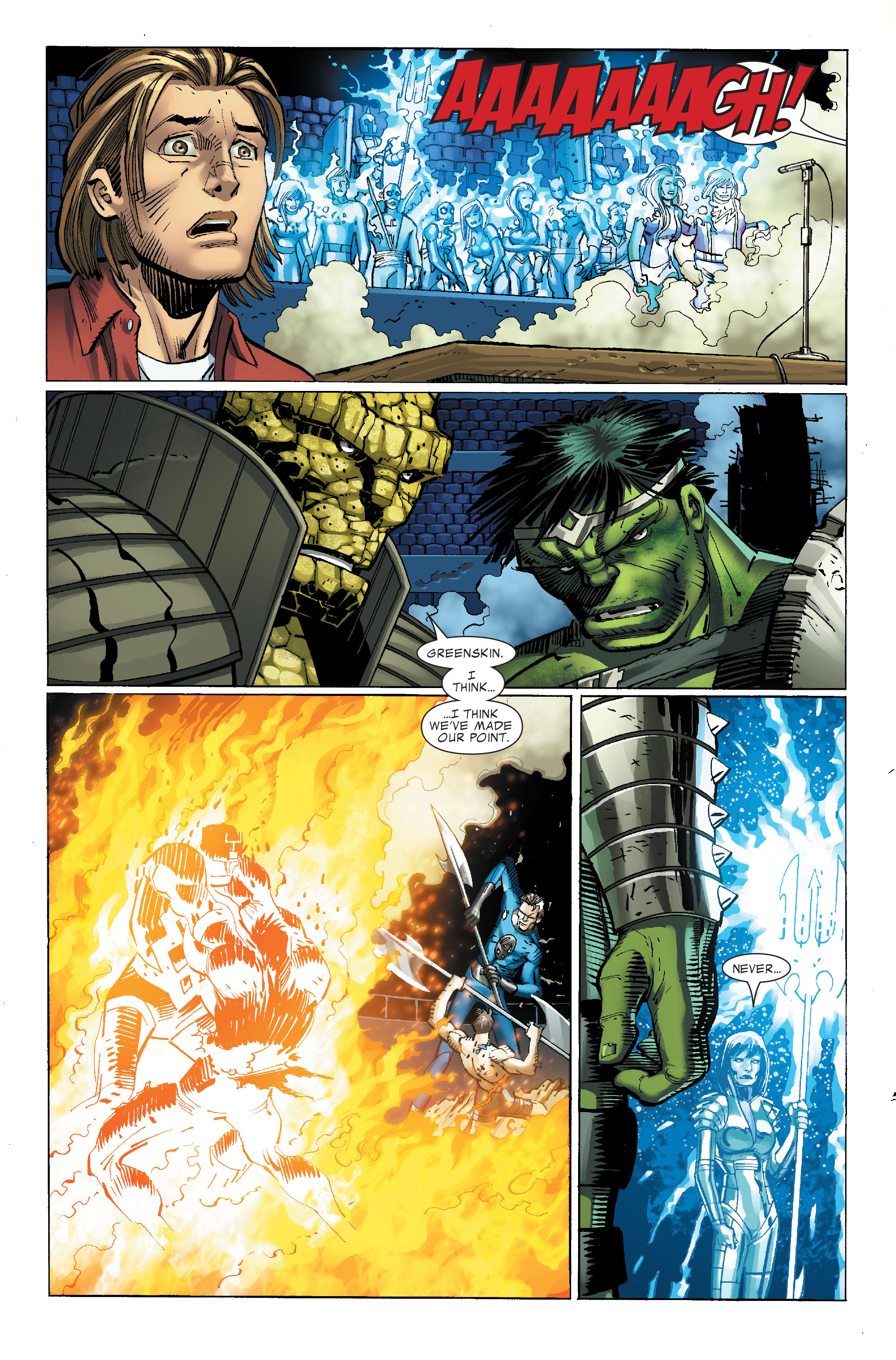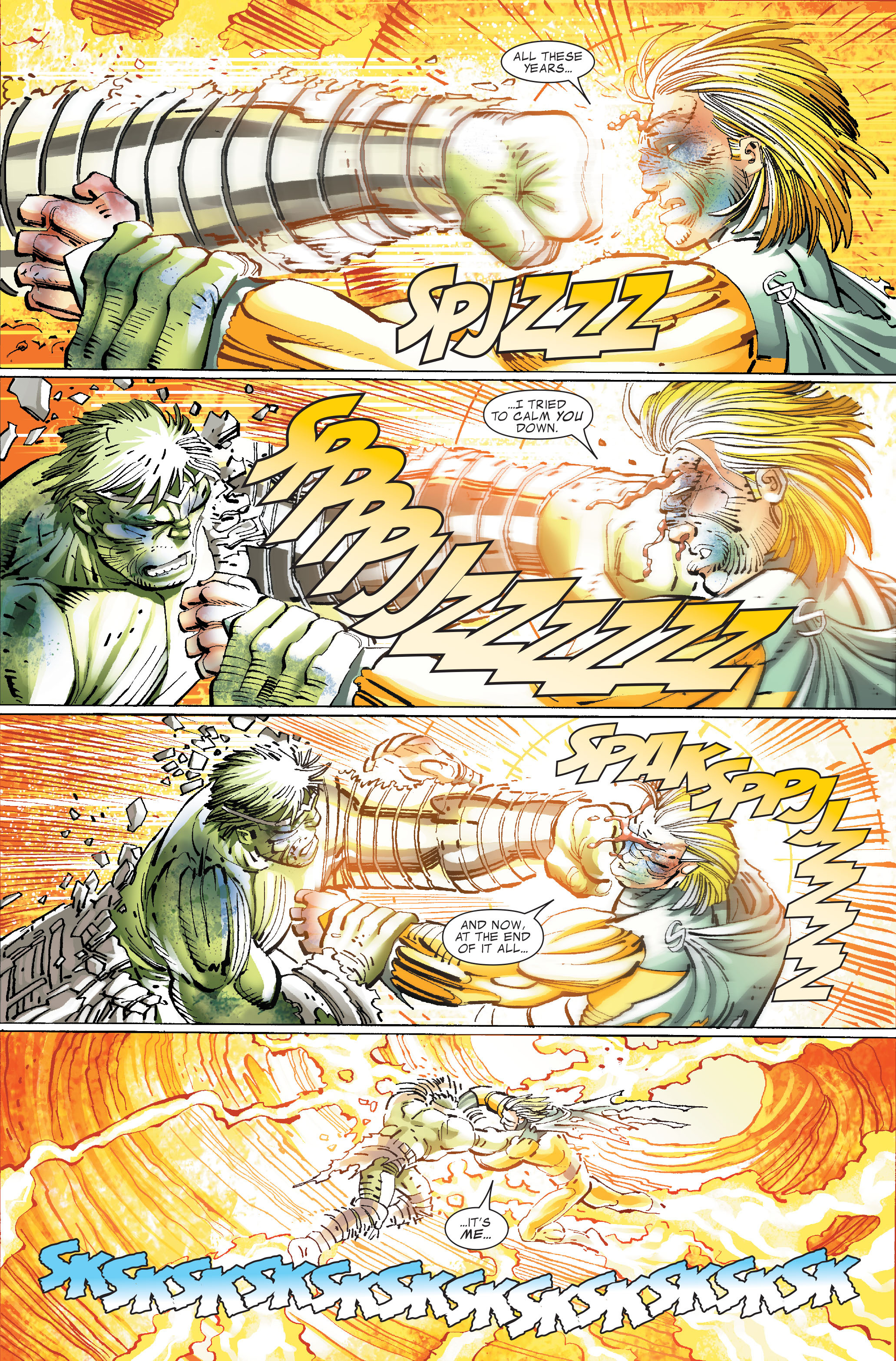 Và Hulk, anh chỉ im lặng. Cơ bắp trên cơ thể anh bắt đầu rung lên và toàn thân anh bắt đầu tỏa sáng. Đây không phải là nỗi giận, đây không phải là nỗi đau, nó là cơn thịnh nộ, và Hulk không còn có thể kiềm chế được nữa. Reed chạy tới, cố gắng hạ hỏa người bạn của mình: "Bruce, mọi thứ ổn rồi, chúng tôi có thể giúp anh..."