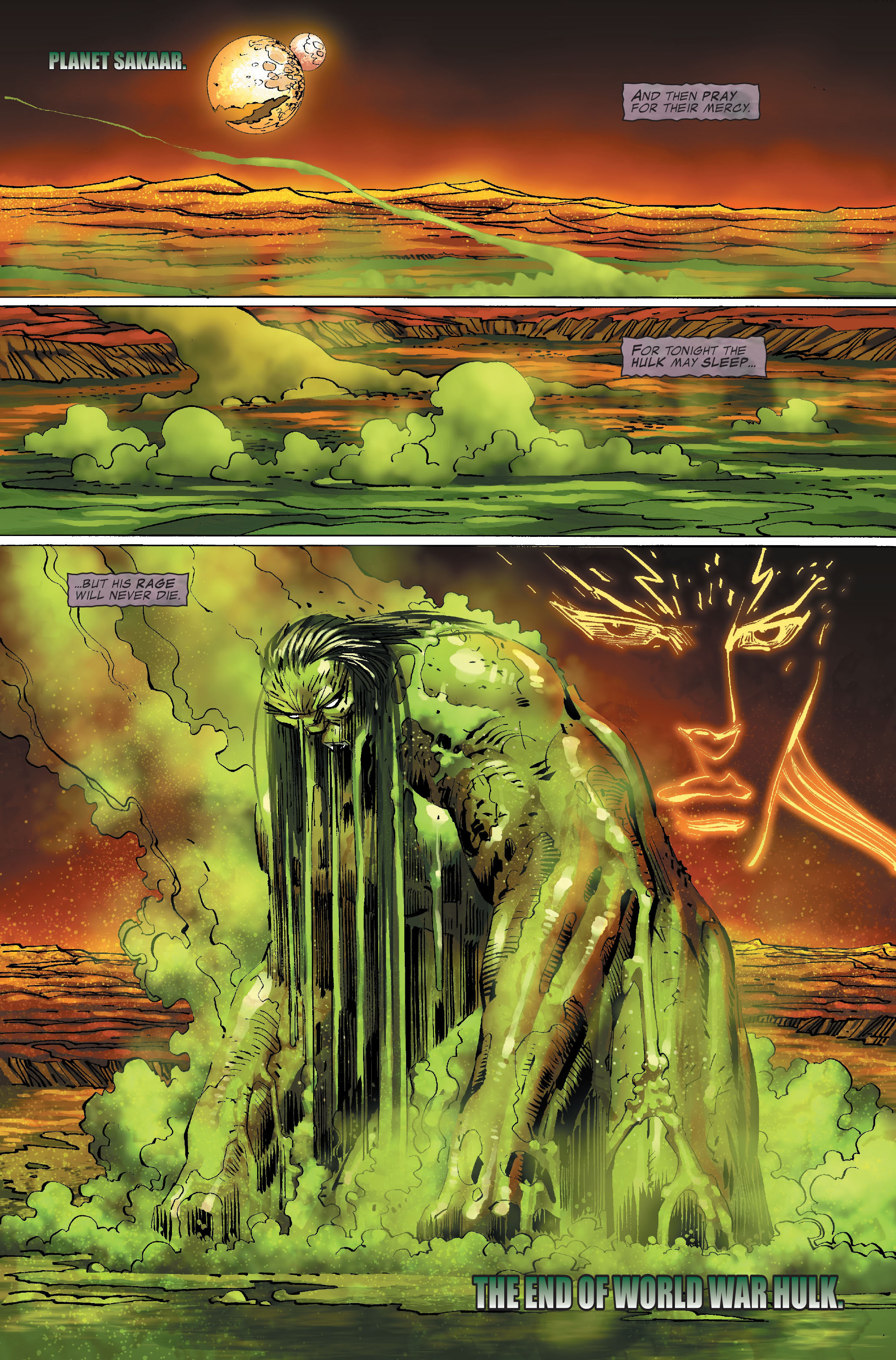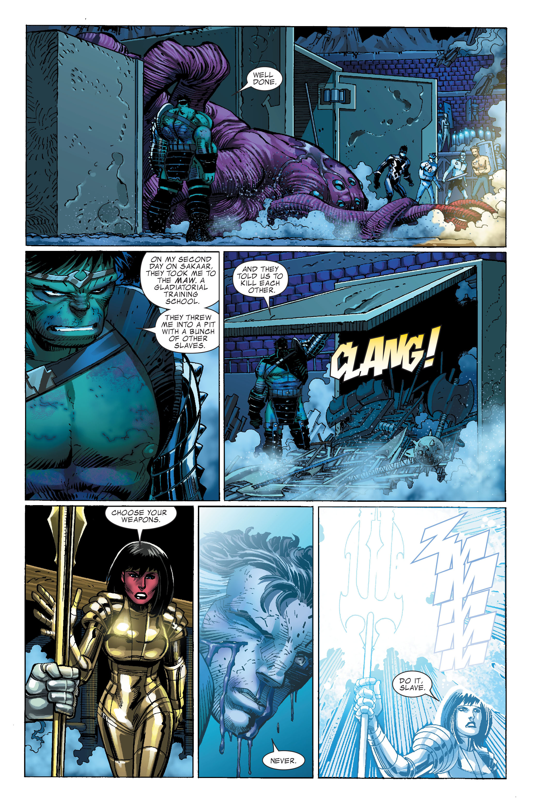 Black Bolt, vua của người Inhumans; Iron Man, tỉ phú, thiên tài, playboy, và nhà từ thiện; gia đình siêu nhân Fantastic Four cùng với nhà khoa học thông minh nhất Trái Đất - Reed Richards và cả Pháp sư bậc thầy Doctor Strange đều đã ngã gục trước Hulk. Giờ đây anh đang trong sân vận động trung tâm, đấu trường anh tạo nên và trước mặt anh đang là những "người bạn" năm xưa. Họ đều bị gắn những thiết bị kìm hãm mà anh và các Warbound phải chịu đựng khi còn ở trên Sakaar và tất cả đều biết chuyện gì sắp xảy ra.