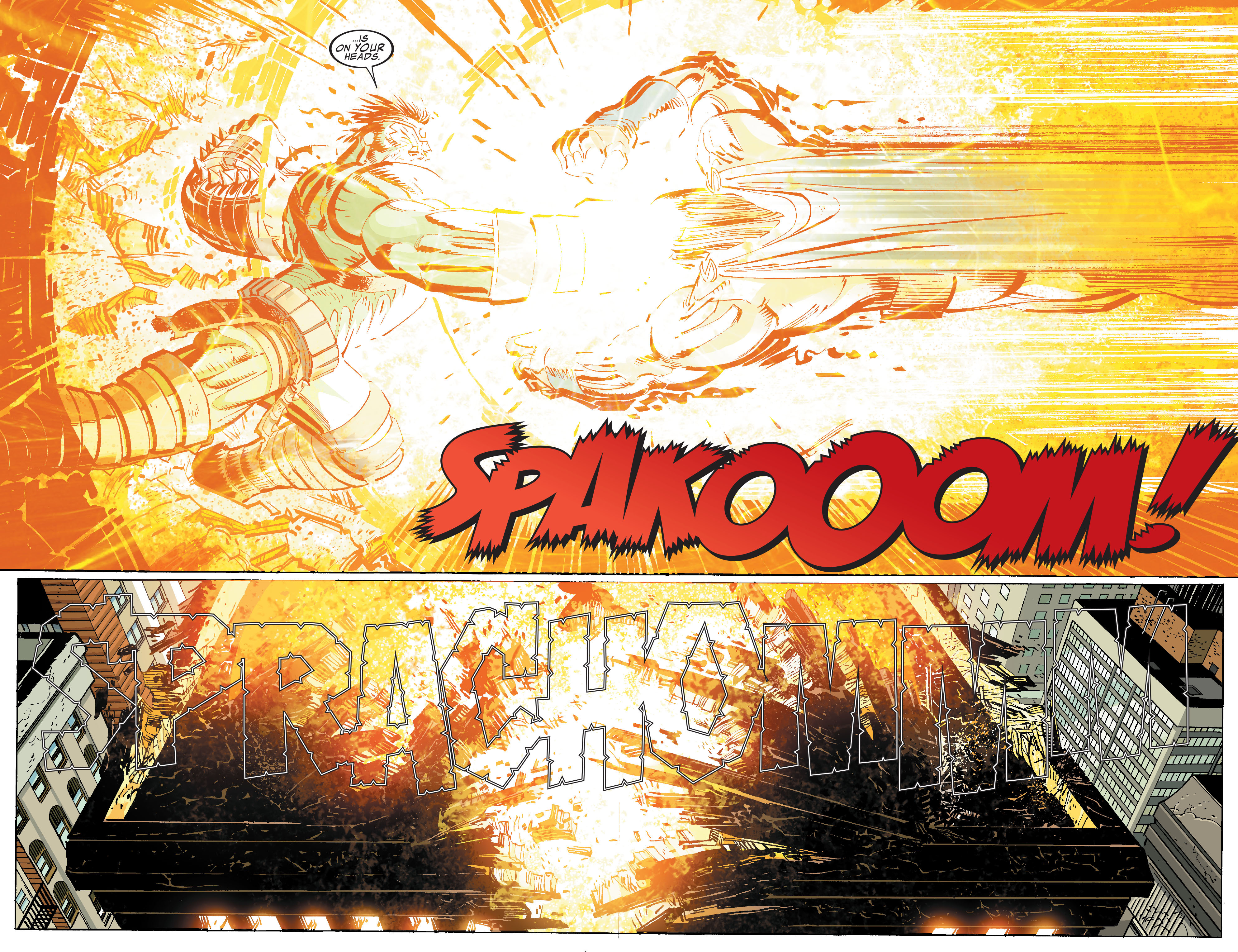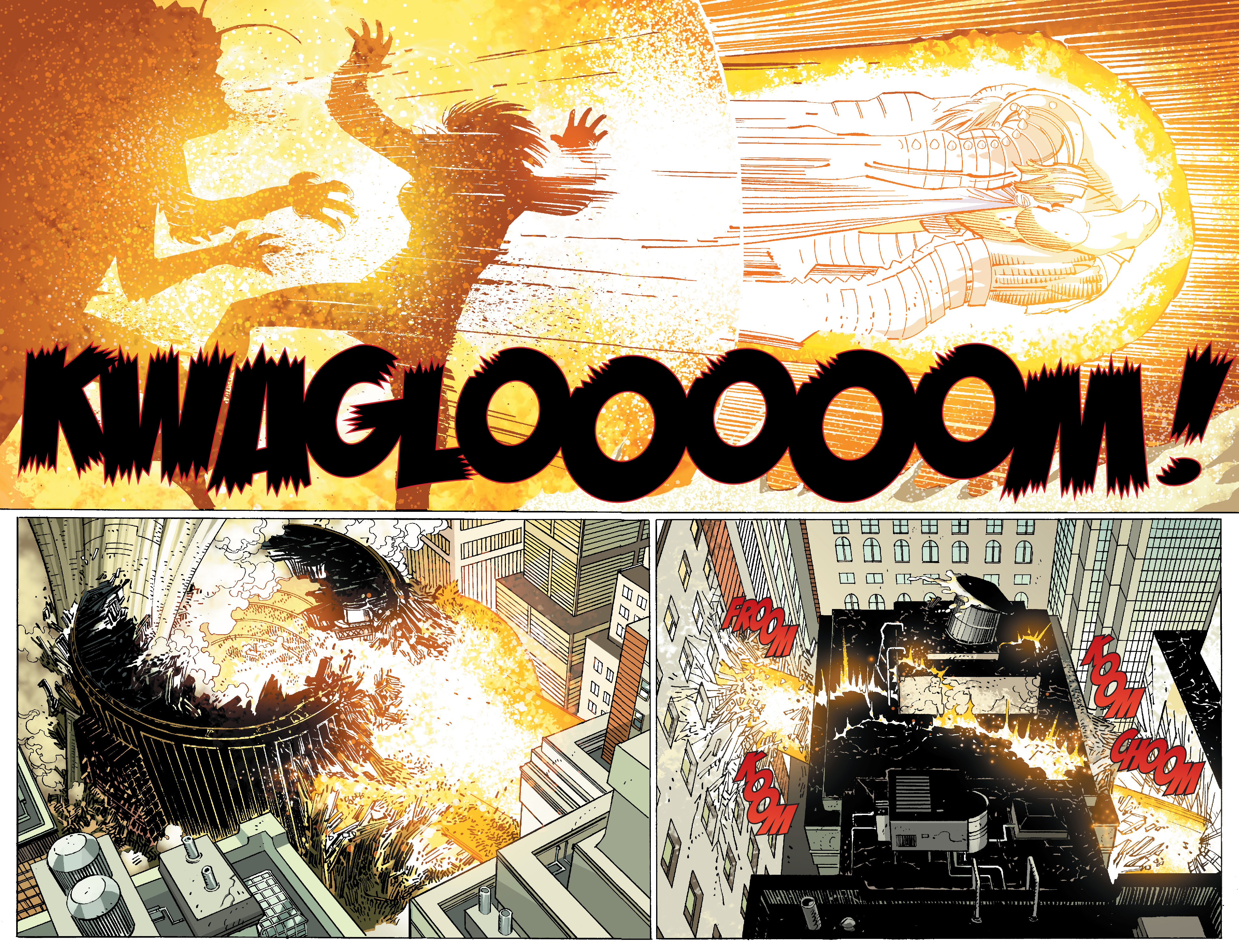 Với sức mạnh của hàng vạn mặt trời đang nổ, cú đấm đó như một quả bom nguyên tử và Hulk bị hất tung lên trời. Người khổng lồ xanh lồm cồm bò dậy...